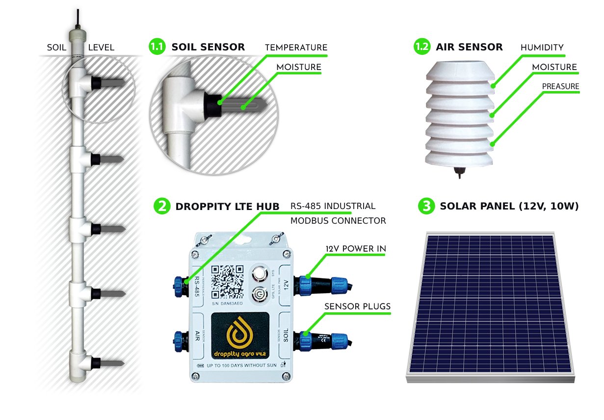 Data collection begins with the sensor. We created the Droppity Agro sensor to eliminate the factors that cause inaccurate soil moisture data. Factors such as disturbed soil structure and water leakage to the sensor. Because Droppity Agro requires only a tiny well, you can install the device with minimal ground disturbance and much less effort. The shape of the sensor helps to maintain close contact with the ground, which gives accurate results, even after heavy rains.